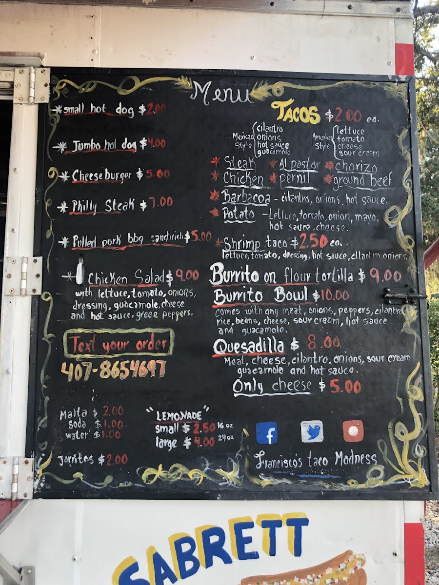 Welcome to Francisco's Taco Madness, a hidden gem located at 704 Prairie Lake Dr, Fern Park, FL. This family-owned food truck has earned a stellar reputation for its authentic Mexican tacos that leave customers raving. From the moment you step up to the counter, you're greeted by friendly service that reflects their pride in serving fresh, flavorful dishes.